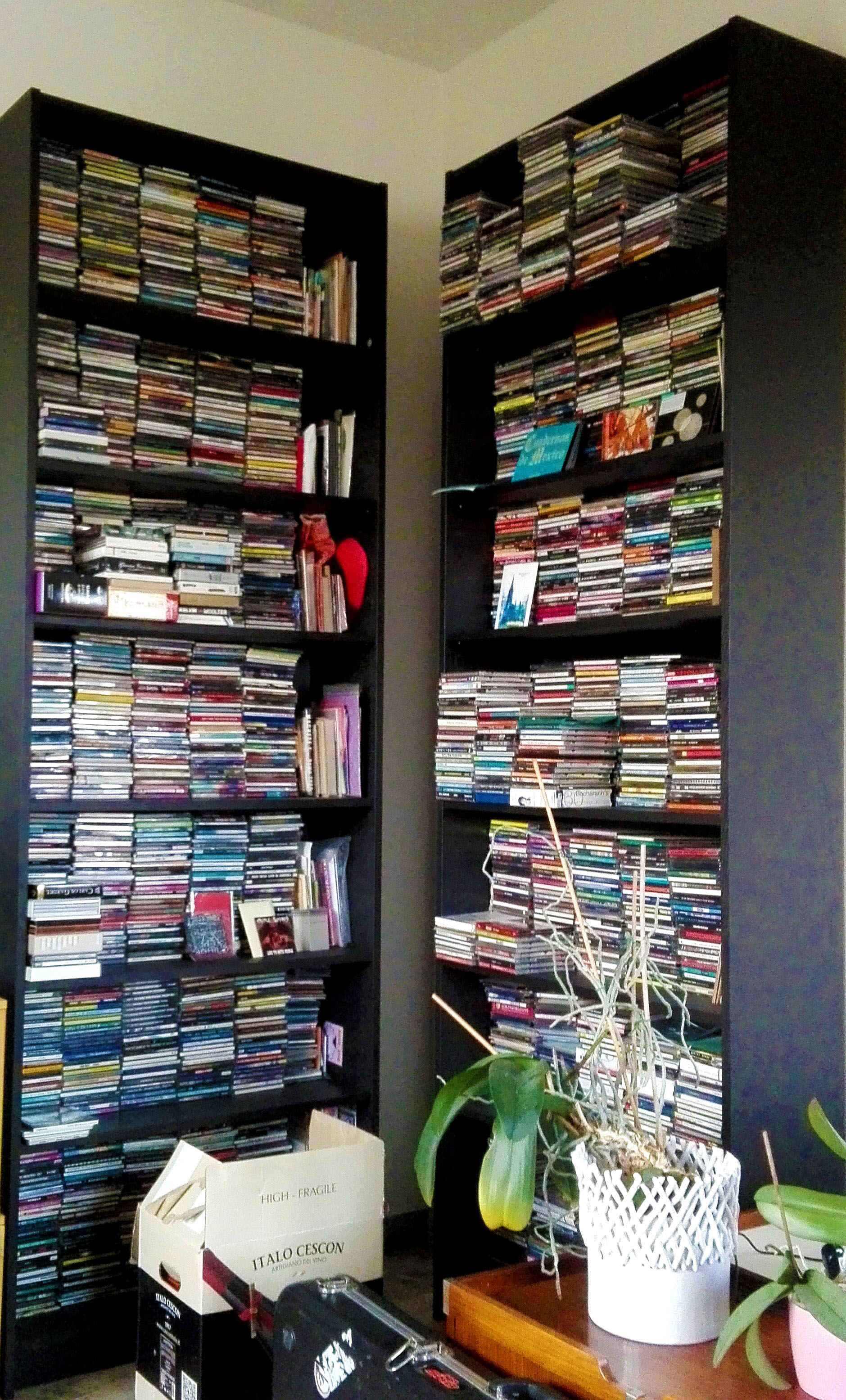 “I sent you the photos of LPs and CDs, as I’ve put the cassettes in the cellar. I pick a few of them every now and then, and I put them in a wall holder in the kitchen, which is where I like to listen to them. Please note that, about the vinyls, this is the complete collection, but many CDs are still in various boxes scattered around Europe.”