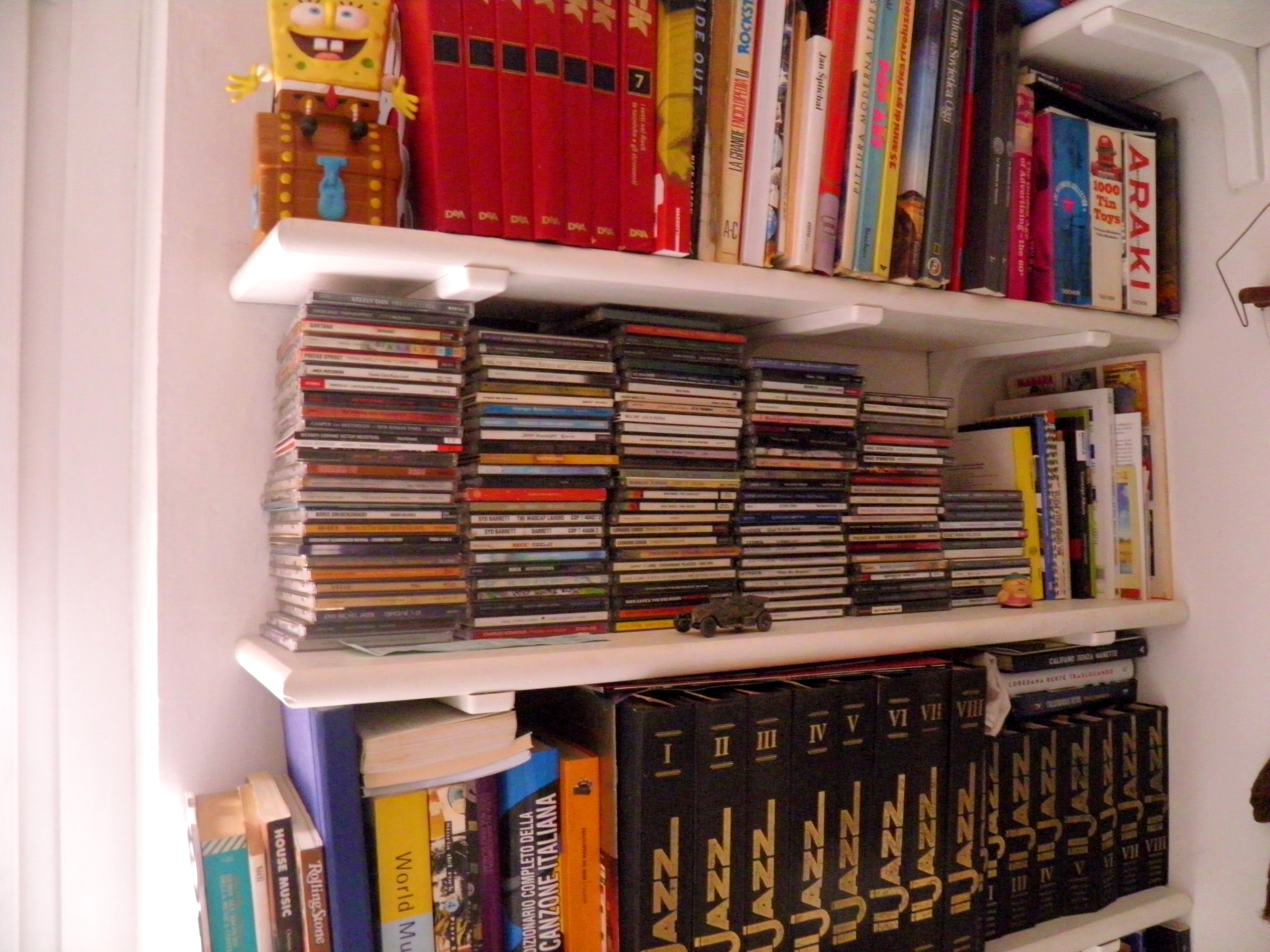 I suppose you refer to the CD spines of the encyclopaedia by Red Ronnie called “Quei romantici, scatenati anni ’50”. It belonged to my aunt, and when she died I’ve inherited it. It may sound silly but, thanks to that encyclopaedia, I’ve discovered – for instance – Riz Samaritano, one of the fathers of “demenziale” [may be translated into “demented rock”,] Italian music.