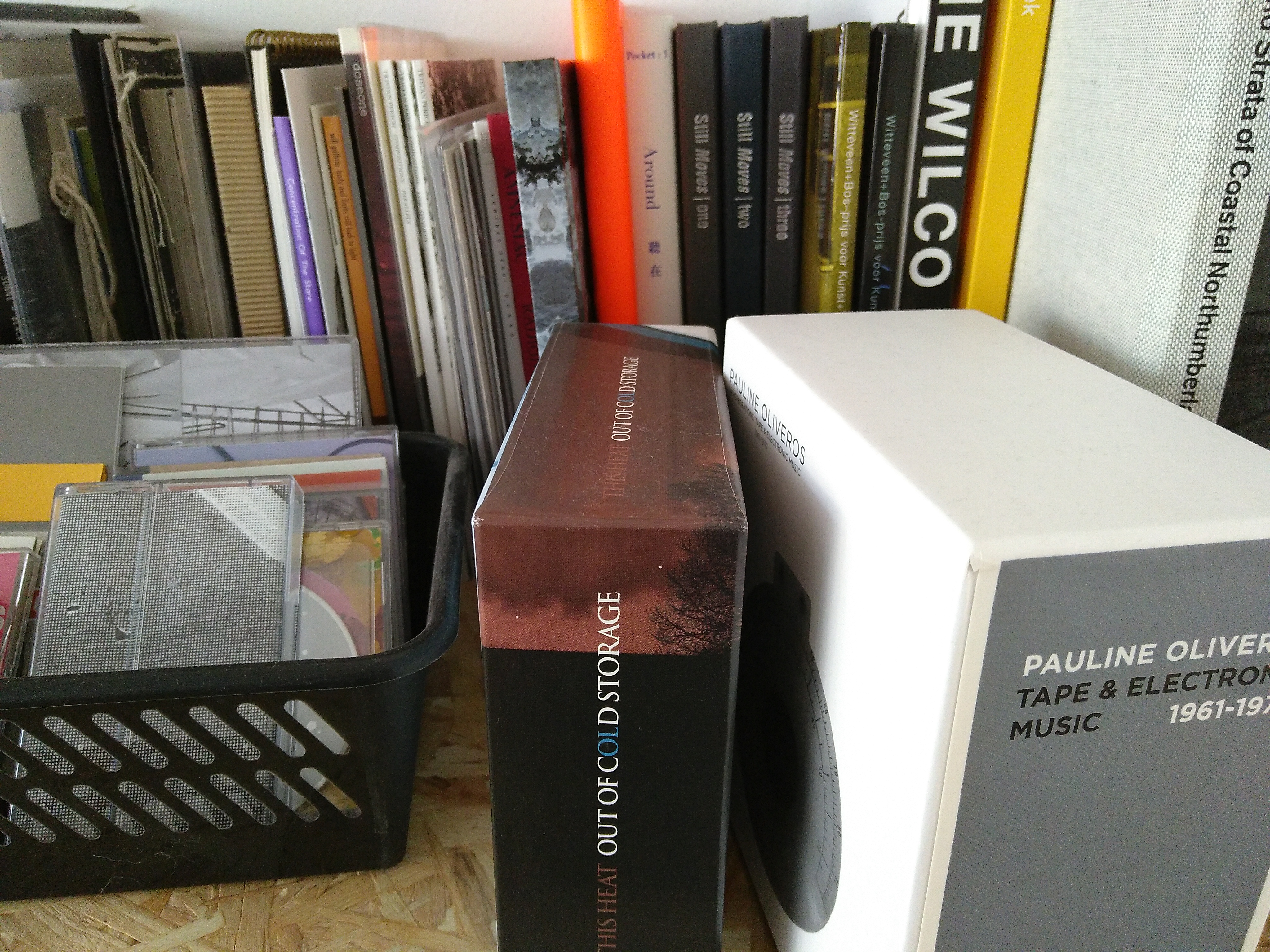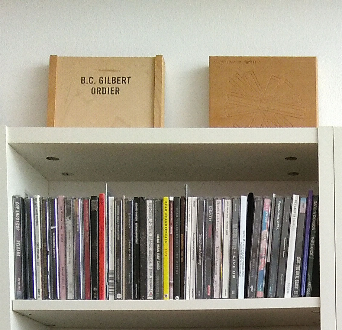 The white spines are Eilean releases, the pink foam-sleeve is the Goodiepal “Mort Aux Vaches” album (which is amazing).