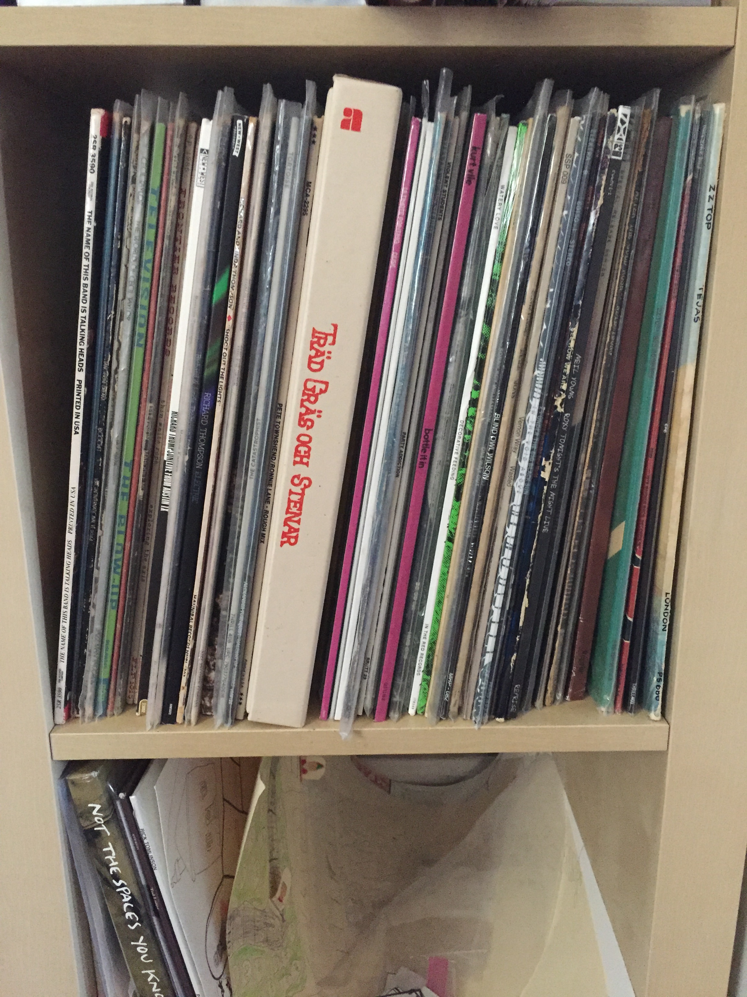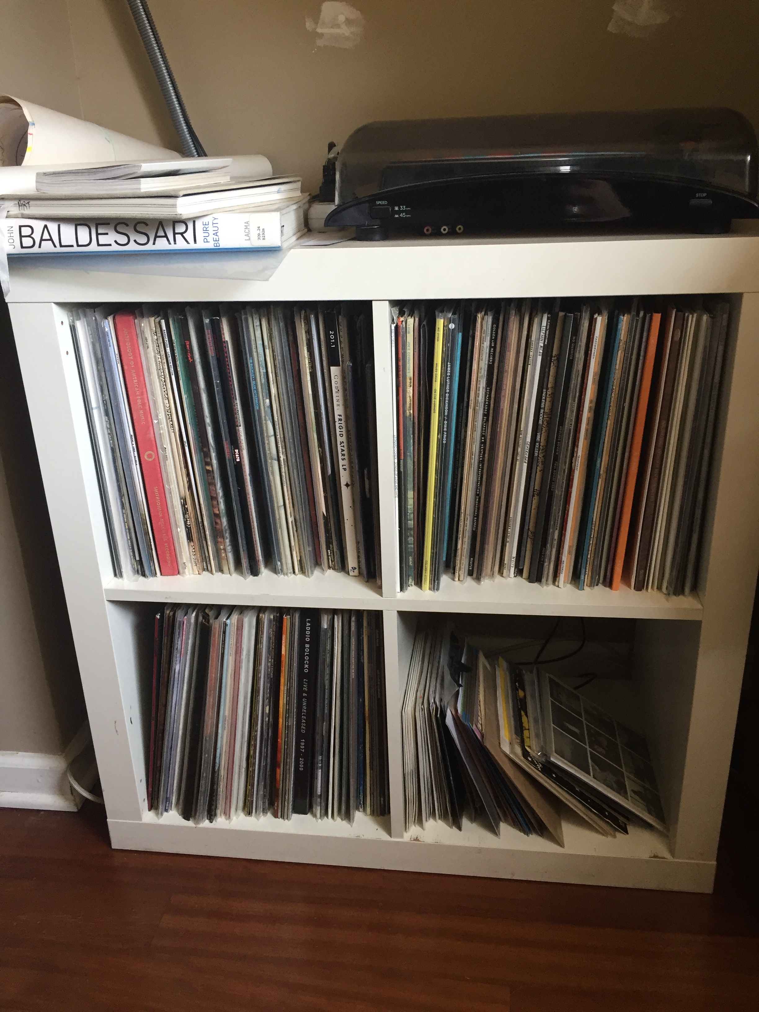 That’s just a little shelf next to the turntable where the LPs that I’m currently listening to live. The other records are Robert Quine & Fred Maher’s “Basic”, Charnel Ground (Chris Brokaw/James McNew/Kid Millions), and Josh Abrams & Natural Information Society’s “Simultonality”.