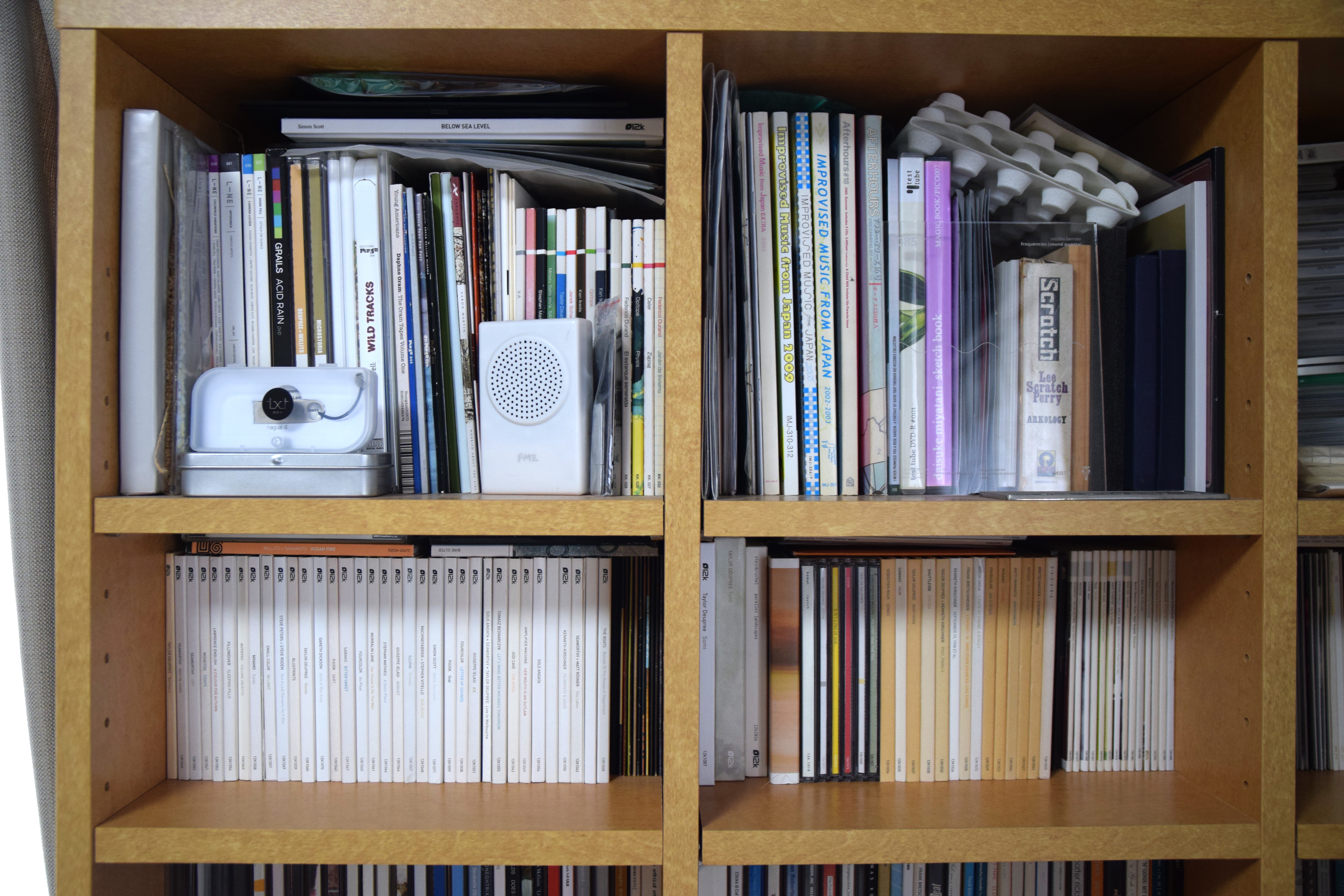 The Buddha Machine is one of the original ones, so it doesn’t sound so good now. The thing beside it is actually a USB stick, it’s a compilation on the TXT label. The books to the right are issues of Improvised Music From Japan, a series that ran in the early 2000s that included CDs of work by the artists featured in the books. I came to Japan in 2000, and at that time the “onkyo” scene in Tokyo was at its height. I loved that very quiet, improvised electro-acoustic music and it definitely steered my own music making in a direction that was more free-flowing and minimal. I originally came to Japan to teach for a year, but it’s now my home.