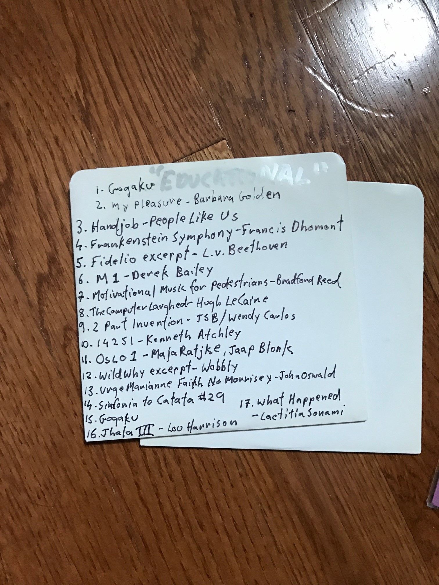 You told me that this CD marked “educational” is a handmade mixtape from Matmos, whose CDs are in the shelves! Tell me about that… is it a sort of compilation they did for you?